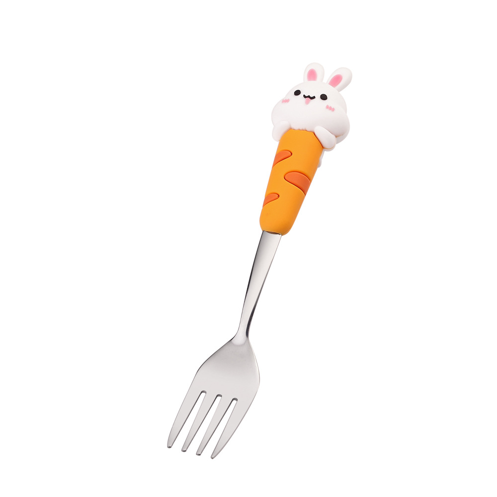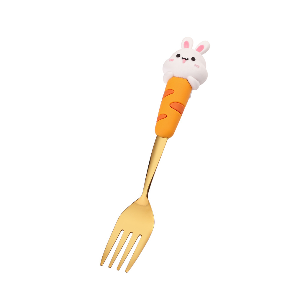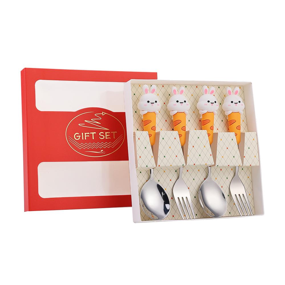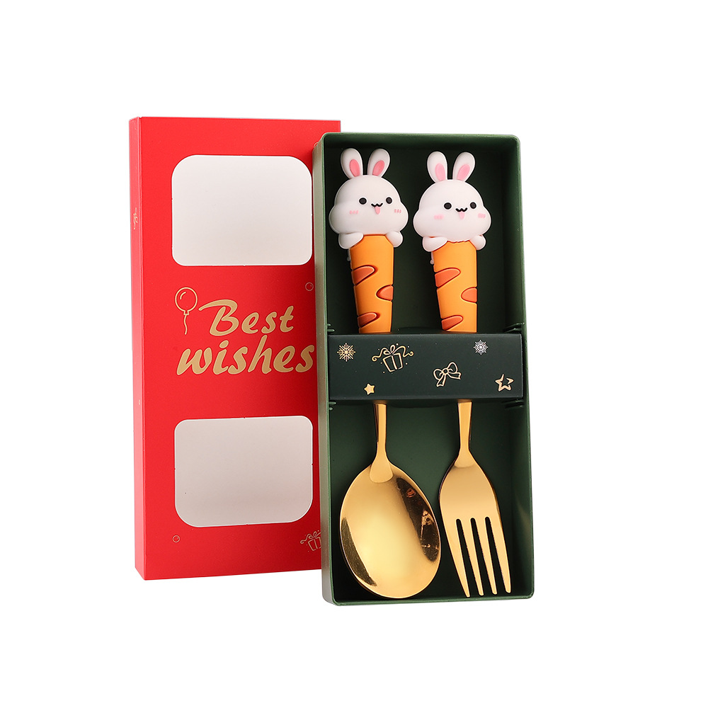 304 Creative Cute Rabbit Large Round Spoon Coffee Spoon Gift Set Adorable Dessert Spoon Fruit Fork Gift Box Set