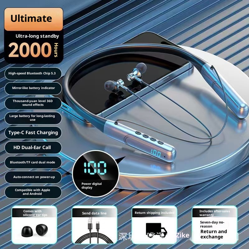 3c 2023 Nuove cuffie Bluetooth da gioco wireless con fascia da collo e display digitale, batteria a lunga durata, universali per tutti