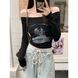 505 # 40 count T-shirt a maniche lunghe in puro cotone autunno 2024 per donna con stampa monocollo