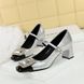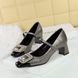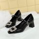 5298-K32 Scarpe da banchetto da donna con tacco medio grosso, punta quadrata, cinturino con fibbia in metallo con diamanti e bocca leggera, con blocchi di colore