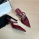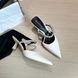 623-2 Pantofole a punta alta di alta qualità, stile francese, con strass e catena, punta chiusa, tacco sottile