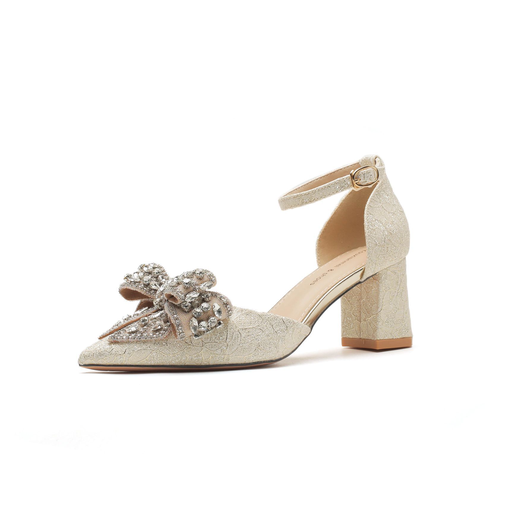 6666F-016 Bowknot Chunky Heel Hollow Strap Wedding Shoes Elegant High Heels for Wedding Banquet Dress