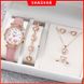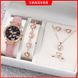 6pcs/set Fashion Diamond-Studded Butterfly Heart Belt Quartz Watch + Pink Heart Set