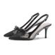 733-8 Scarpe con tacco a spillo a punta senza schienale e fiocco in vera pelle a pois per donna, stile francese, comode, singole