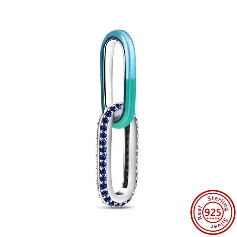 Braccialetto con ciondolo a forma di serpente classico S925 in argento sterling 925 blu e viola, con perline di collegamento a catena singola e doppia.