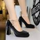 Popular elements: Korean version square toe, thick heel, waterproof platform, pearl ribbon, pearl chain, bow decoration, super high heels, single shoes for women