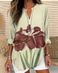 Abbigliamento da donna ampio e comodo con stampa digitale piccola manica lunga con scollo a V