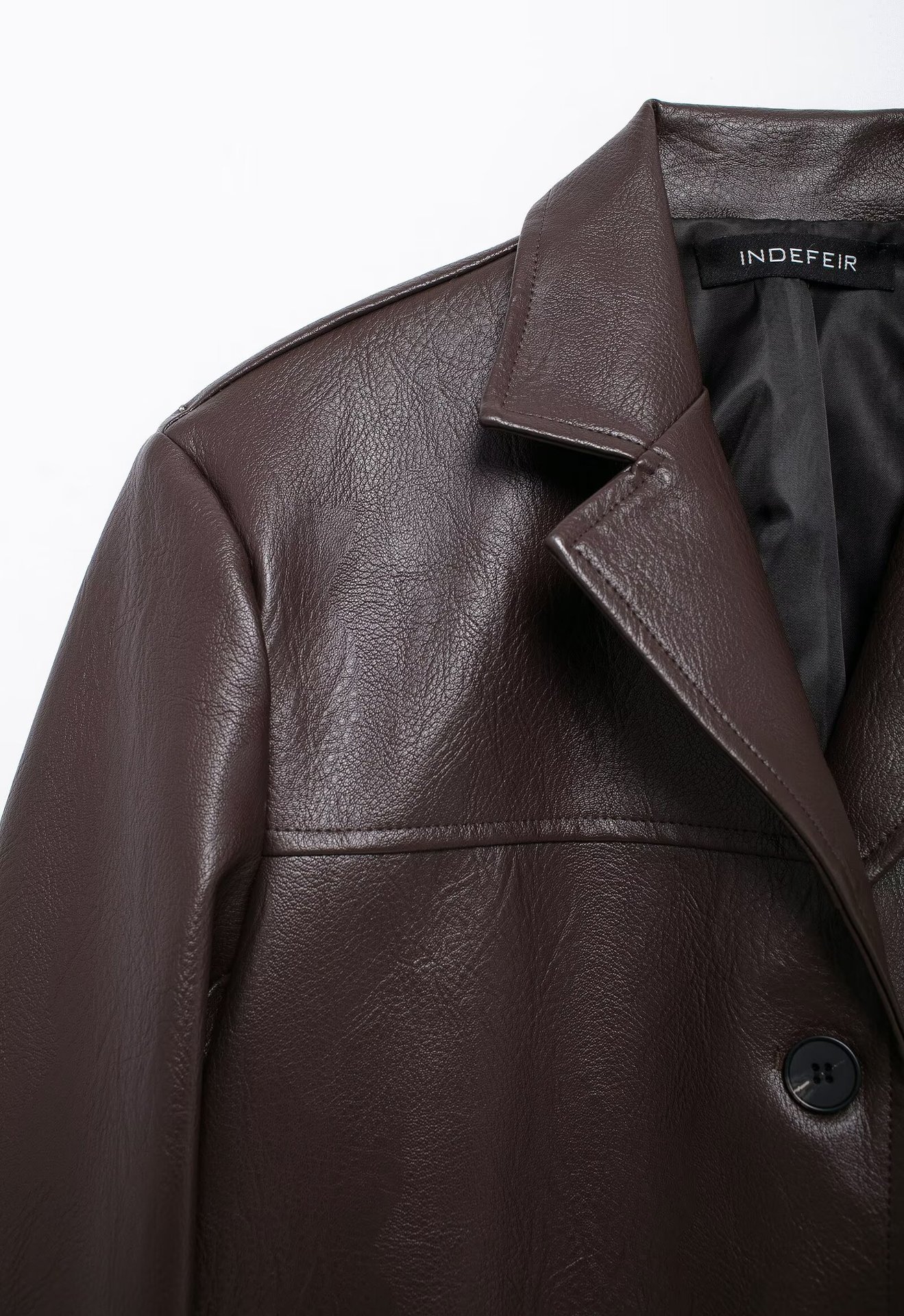 Abbigliamento da donna autunno e inverno nuovo alla moda semplice vecchio stile giacca in pelle