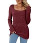 Abbigliamento da donna autunno inverno, top tunica oversize a maniche lunghe con scollo quadrato e coste spazzolate, vestibilità comoda e casual, tessuto morbido, colore rosso vino