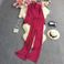 Abbigliamento da donna Camicia ampia a maniche lunghe pieghettata in tinta unita, abito a due pezzi