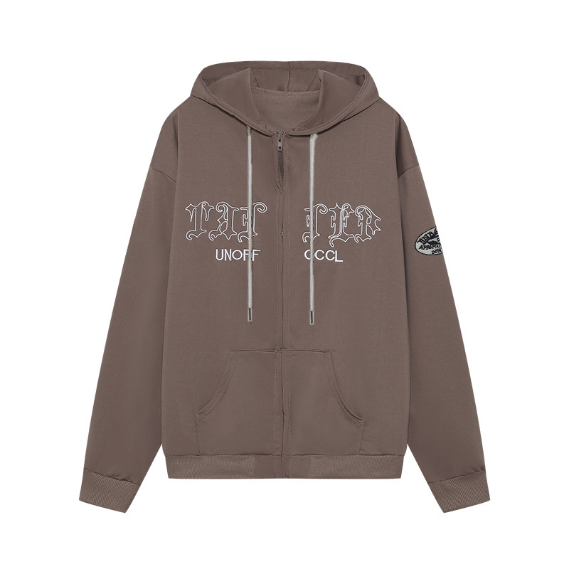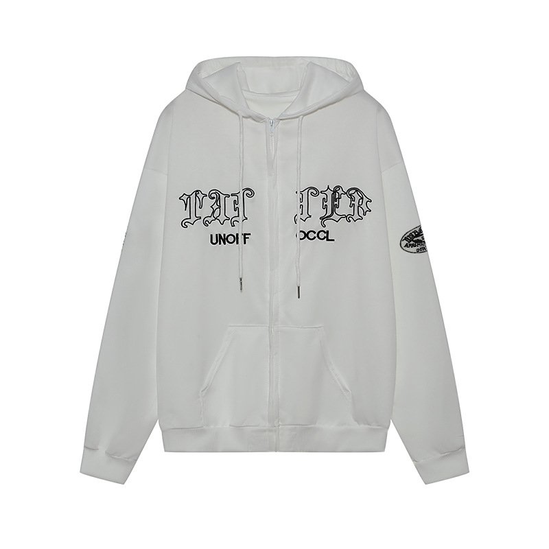Abbigliamento da donna giacca cardigan in felpa casual allentata con tasca con cappuccio ricamata con lettera retrò
