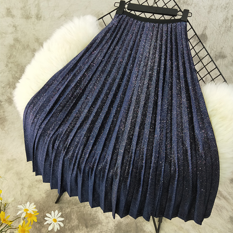 Abbigliamento da donna Gonna a pieghe in velluto con stampa oro alla moda da donna Gonna di media lunghezza Gonna a trapezio in seta lucida a vita alta