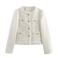 Abbigliamento da donna in tre colori, in seta brillante, stile francese, piccolo profumo, scollo tondo, bordo grezzo, tasca corta giacca