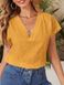Abbigliamento da donna, nuova camicia a maniche corte con scollo a V, tinta unita, in cotone e lino