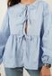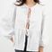 Abbigliamento da donna, nuova camicia a maniche lunghe a sbuffo con fiocco, tinta unita, a righe e a quadri