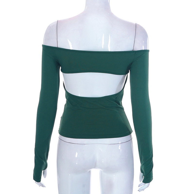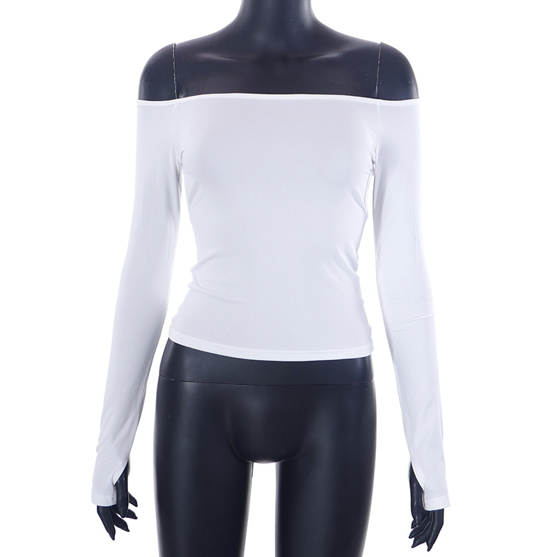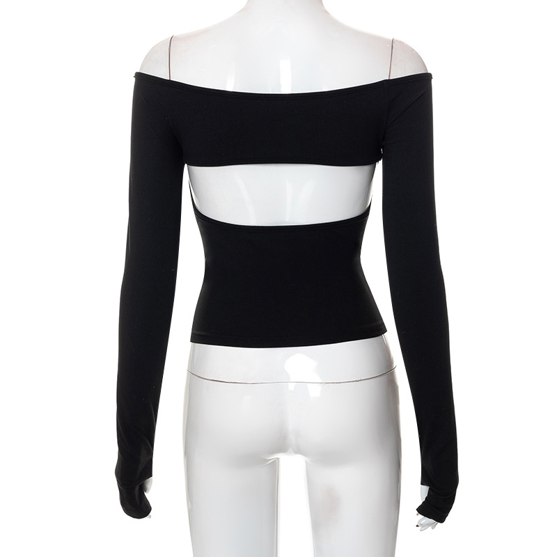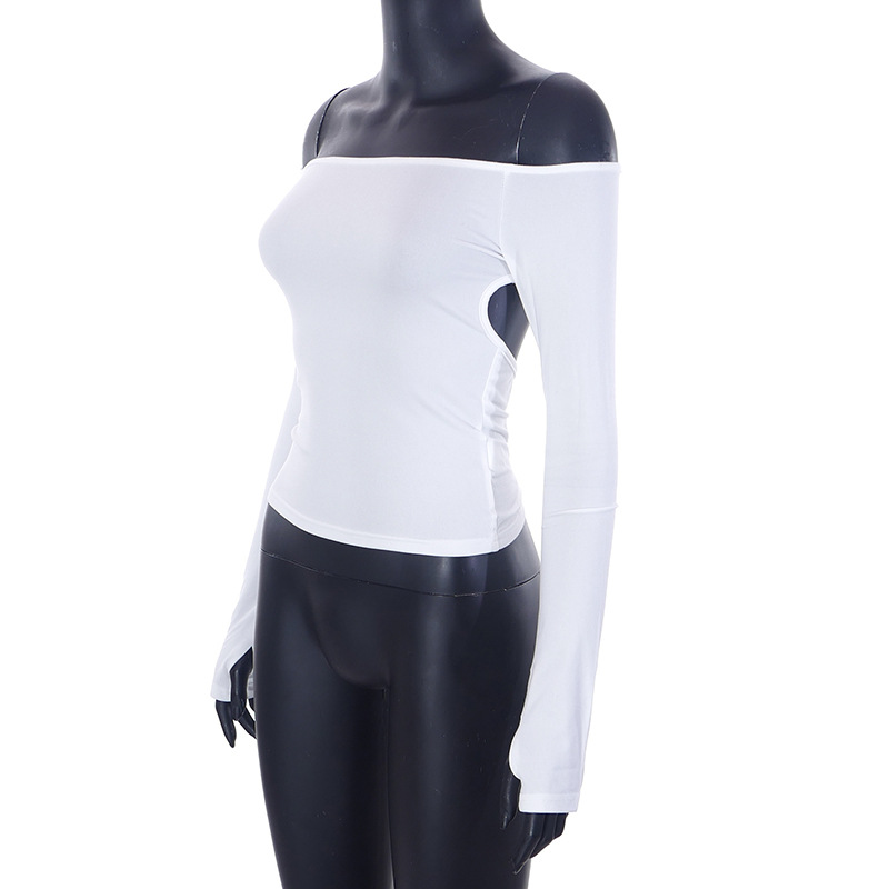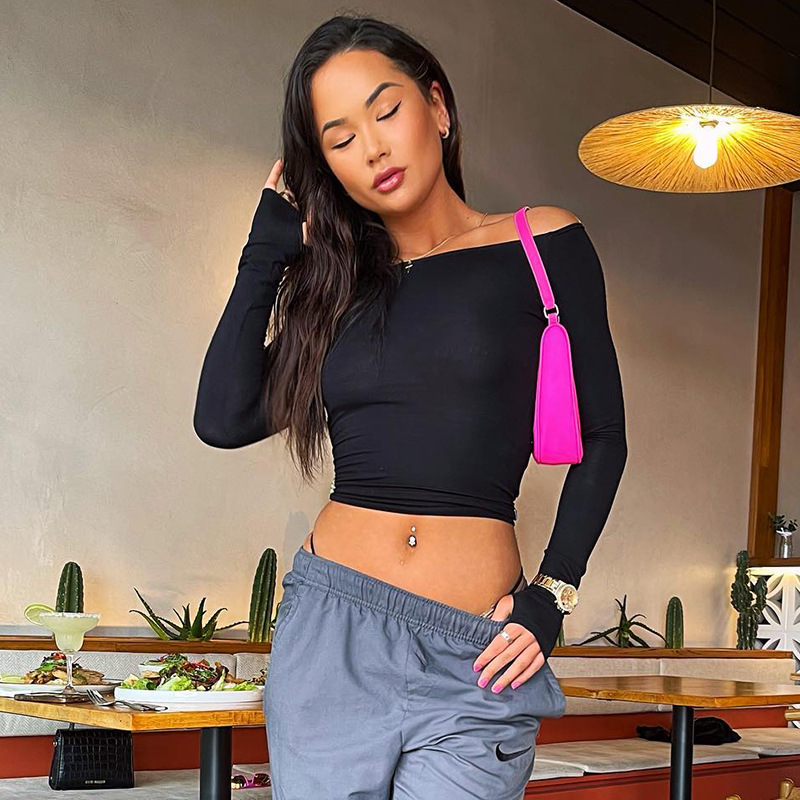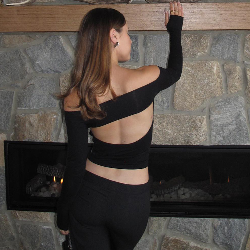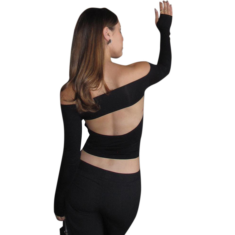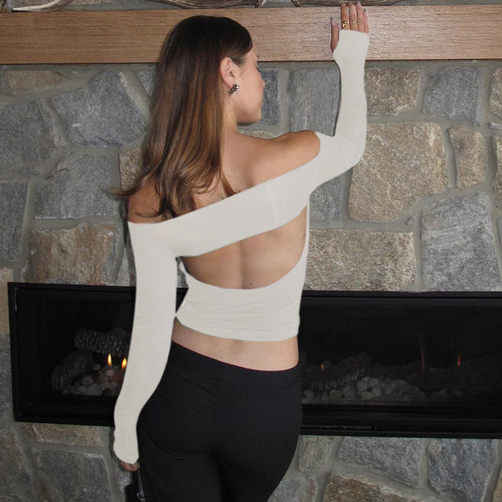 Abbigliamento da donna nuovo top piccolo monospalla a maniche lunghe in tinta unita
