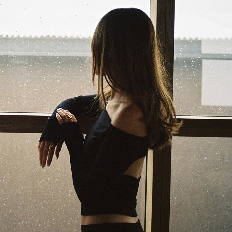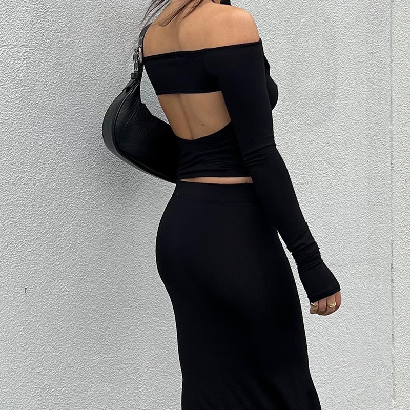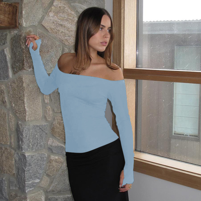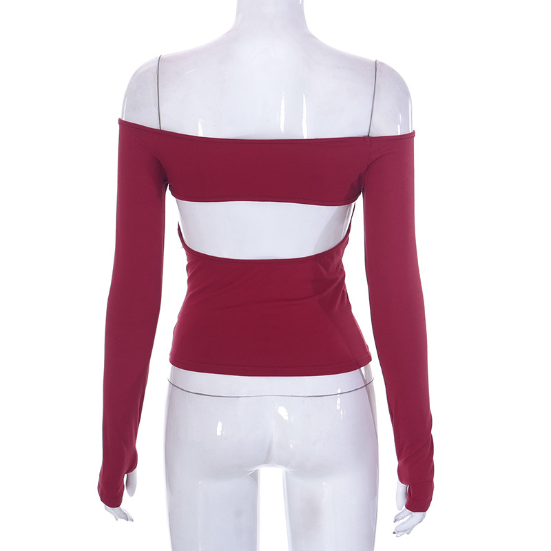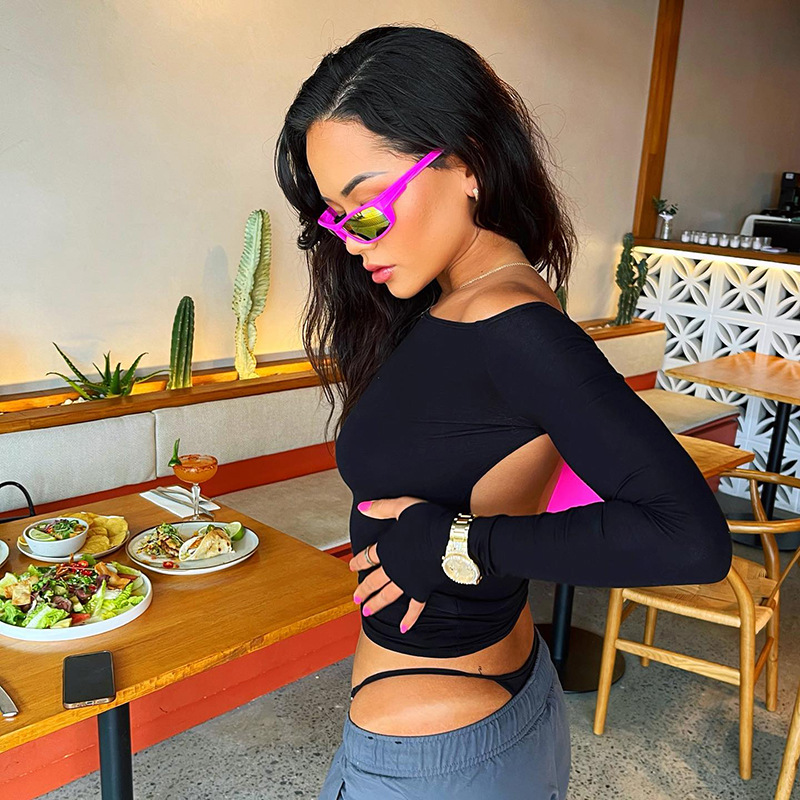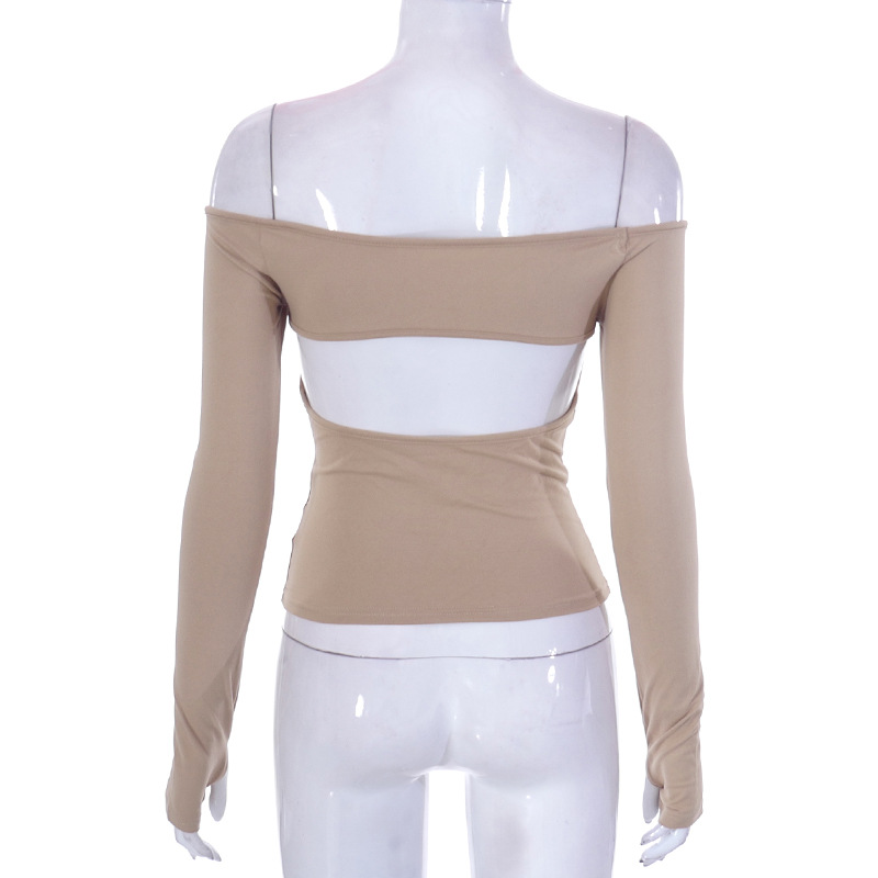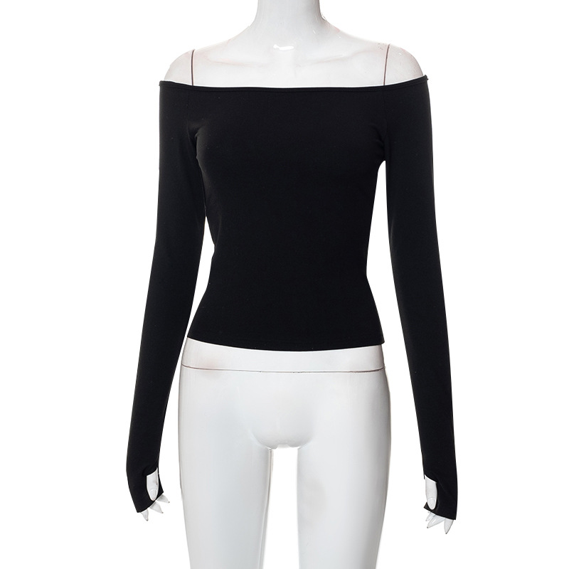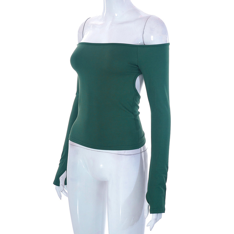 Abbigliamento da donna nuovo top piccolo monospalla a maniche lunghe in tinta unita