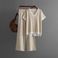 Abbigliamento da donna, semplice, alla moda, con scollo a V, maglione a maniche corte, pantaloni drappeggiati a vita alta e dimagrimento, set di due pezzi in maglia con colori a contrasto.