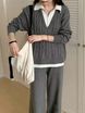 This coordinated set delivers collegiate charm with its cable-knit detailing and mock two-piece polo design. The lightweight knit fabric ensures all-day comfort, while the wide-leg pants complete the polished silhouette.
