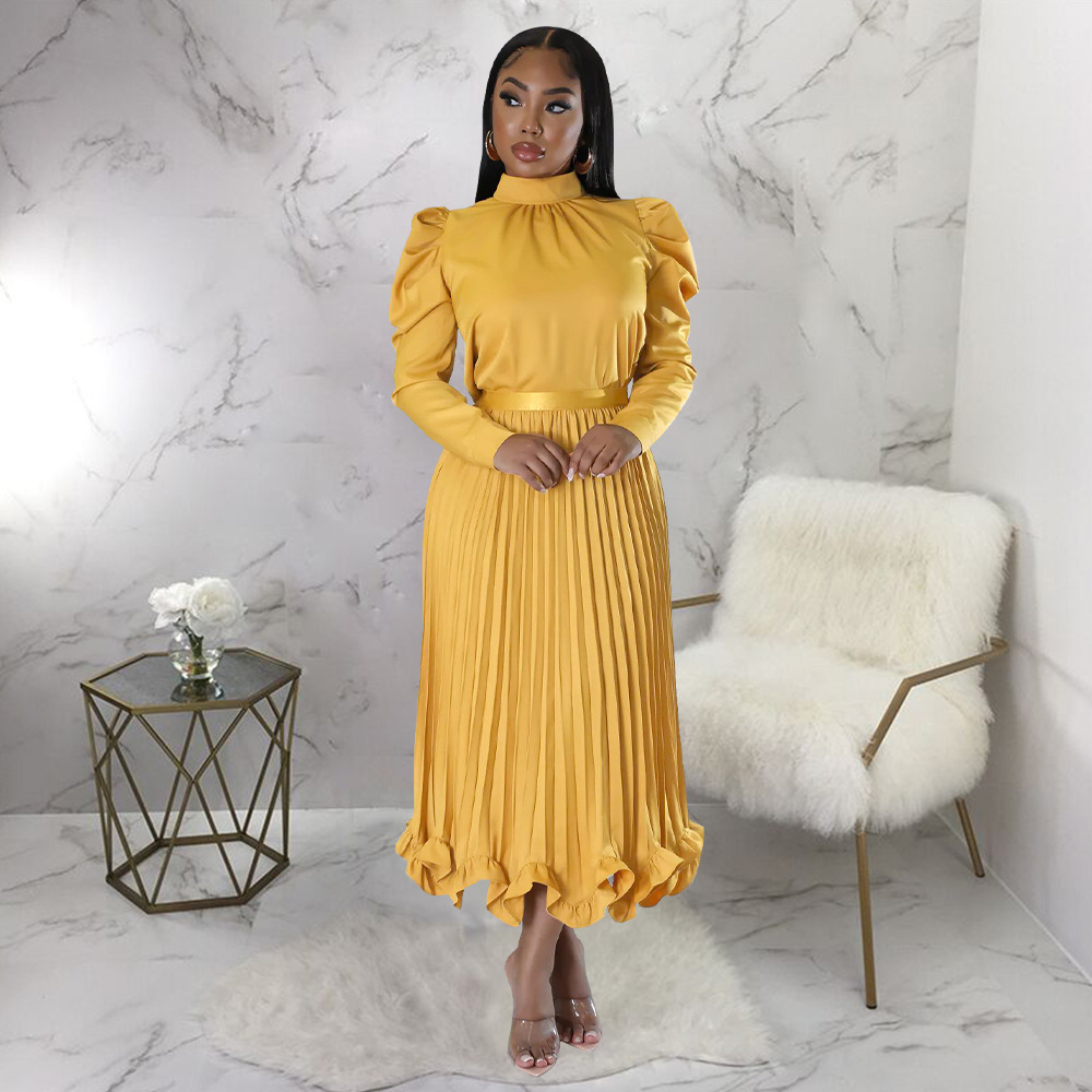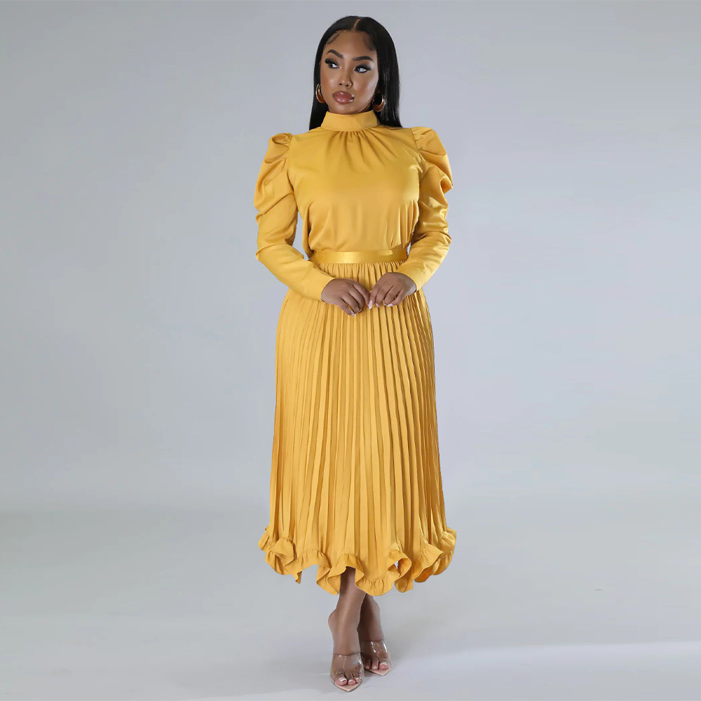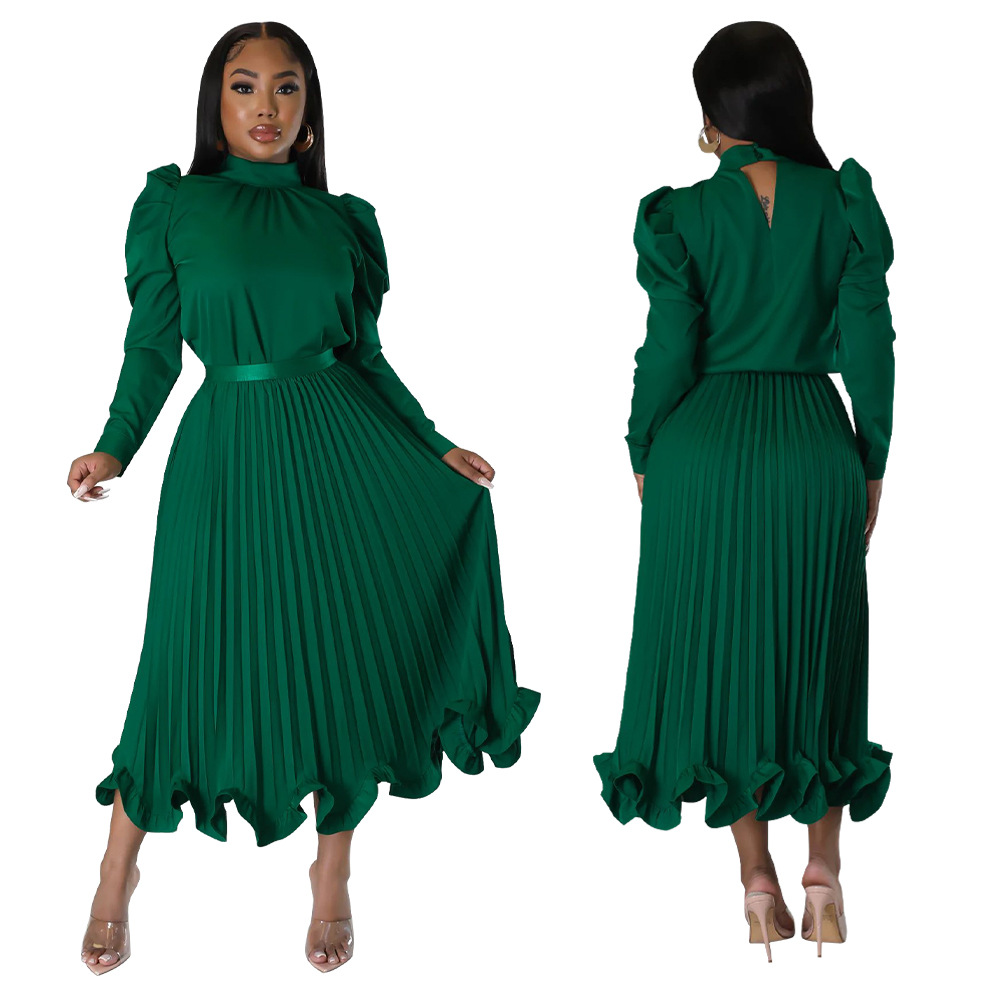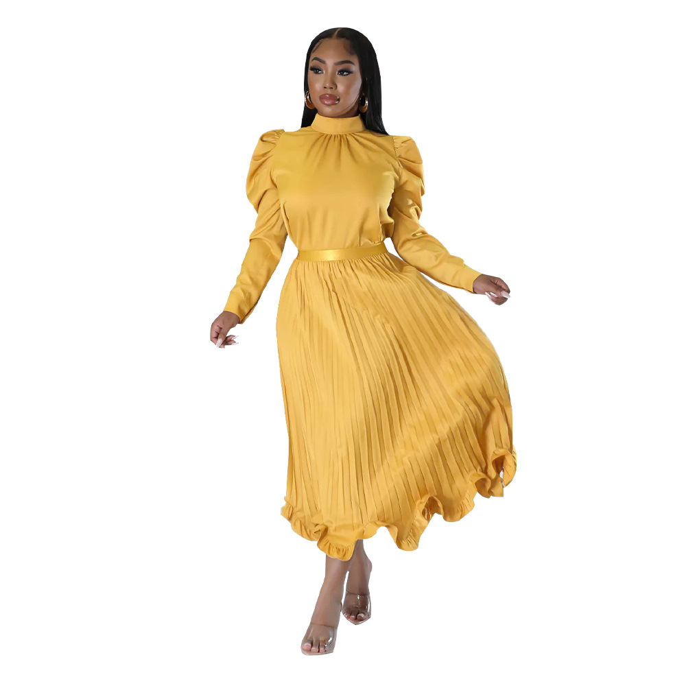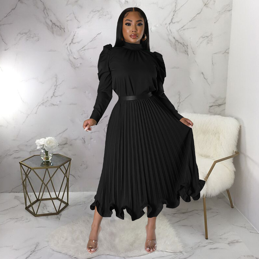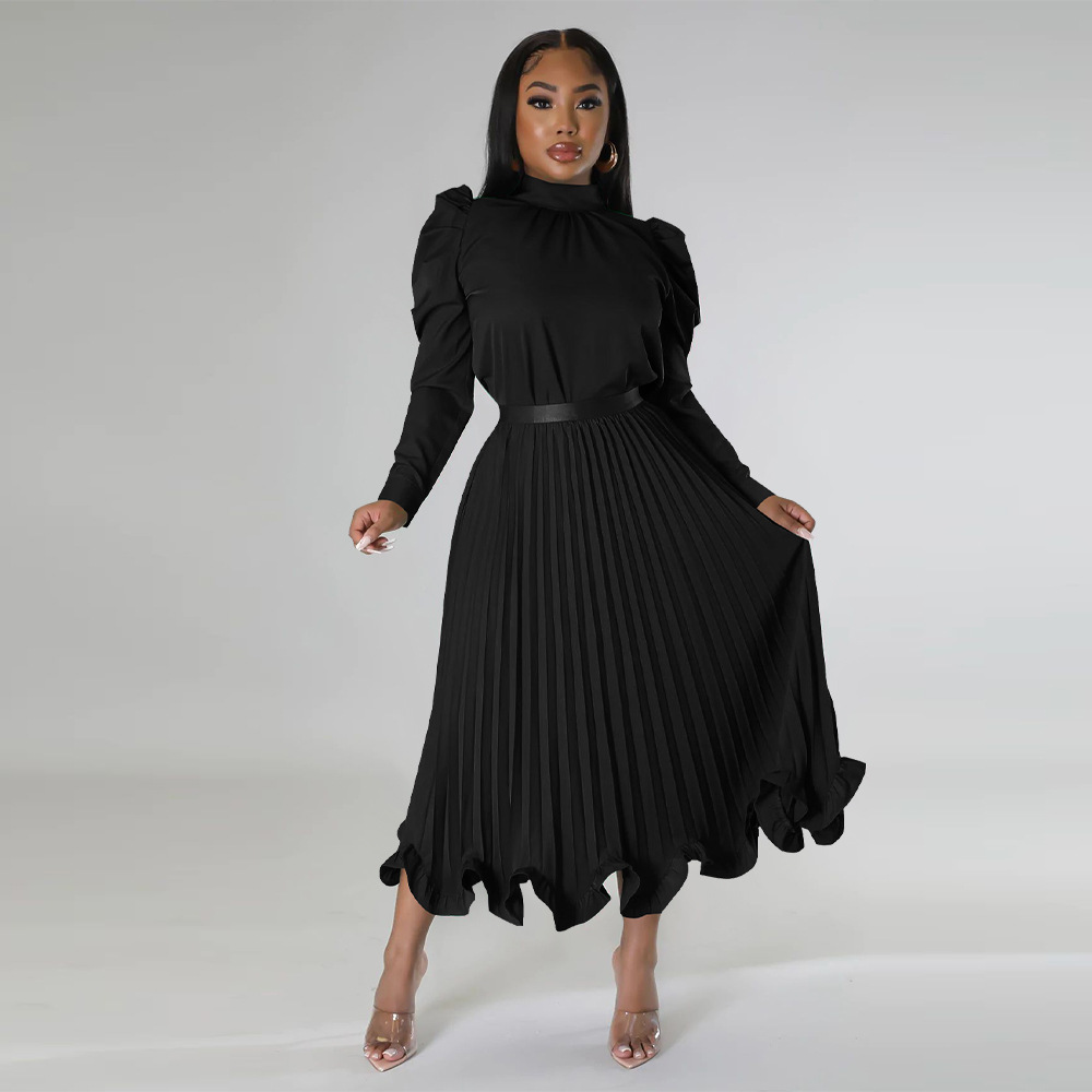 Abbigliamento da donna Top con maniche a sbuffo Gonna plissettata con volant Set due pezzi