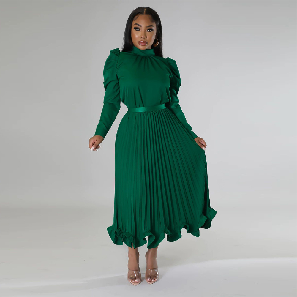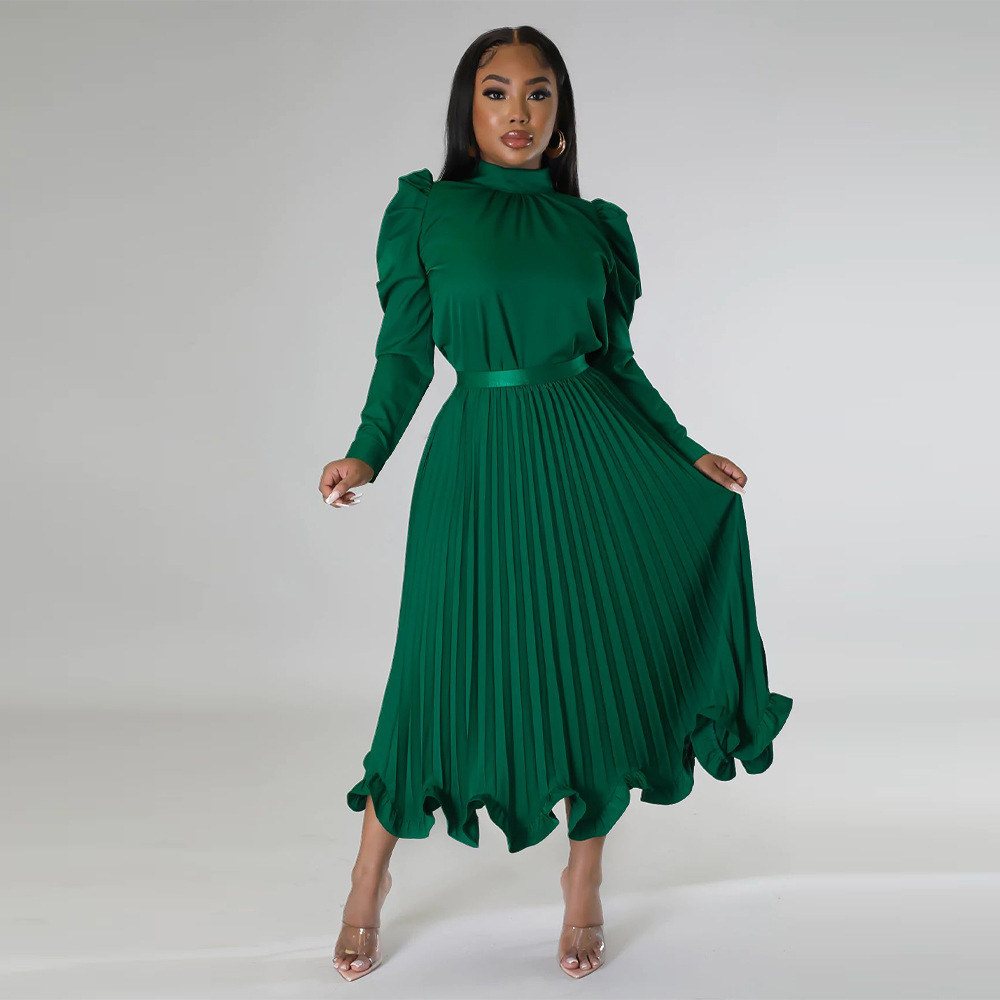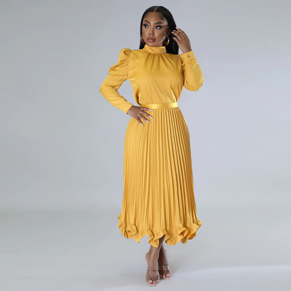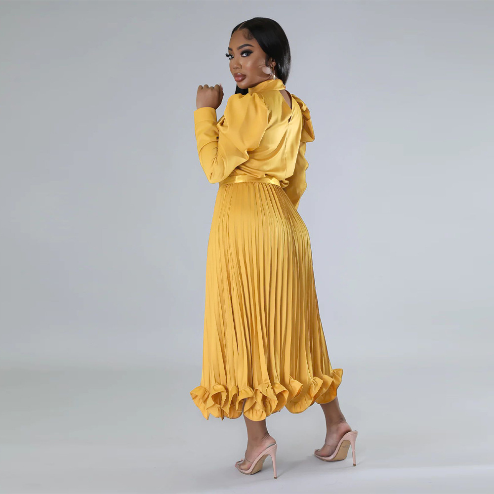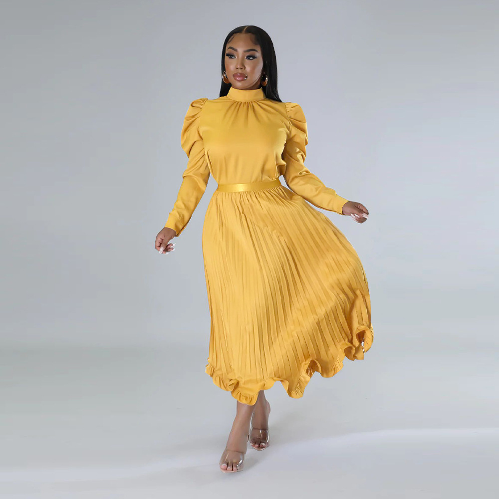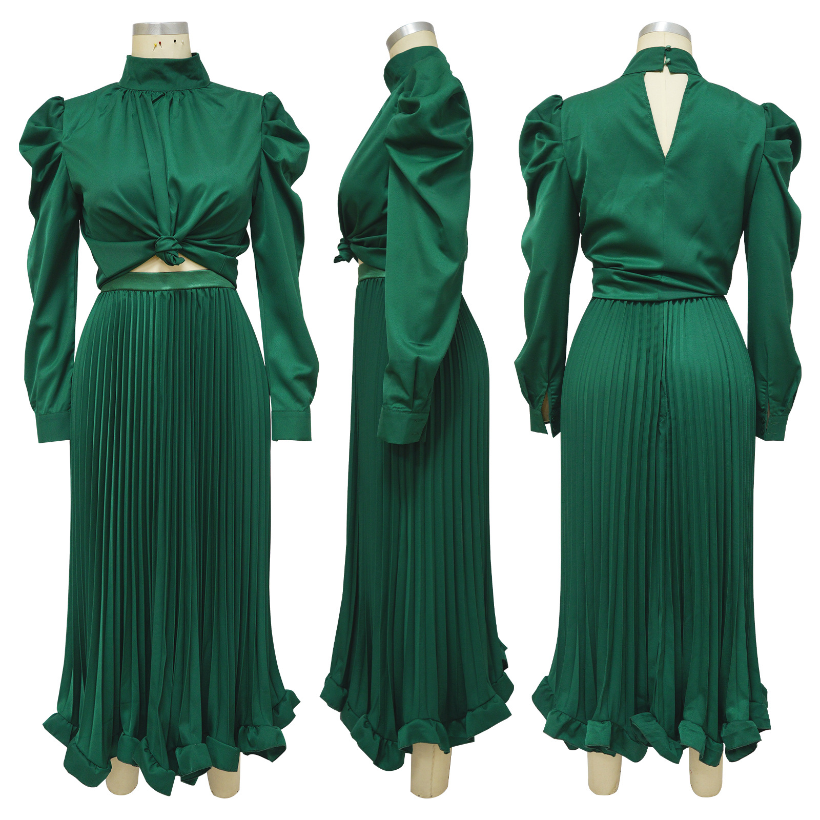 Abbigliamento da donna Top con maniche a sbuffo Gonna plissettata con volant Set due pezzi