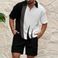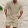 Abbigliamento da uomo, camicia con risvolto e zip a un quarto, top e pantaloncini, completo