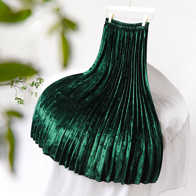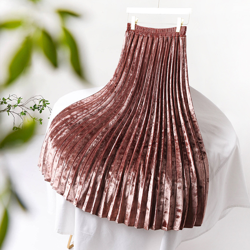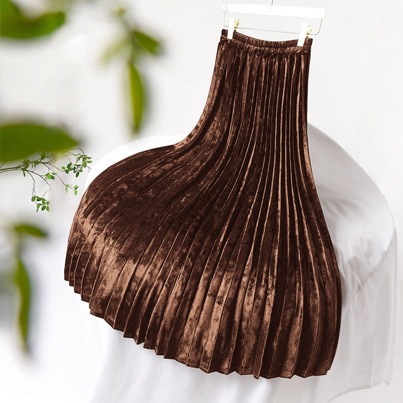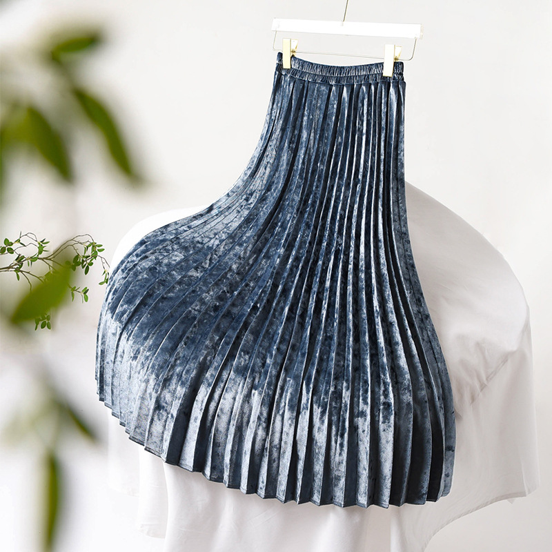 Abbigliamento donna gonna in velluto a rombi a cinque colori gonna a pieghe a fisarmonica lucida per donna lunghezza media autunno e inverno 2024