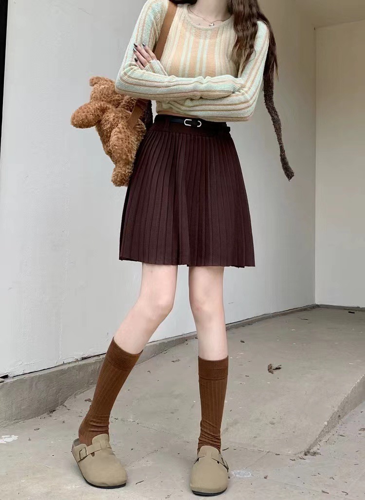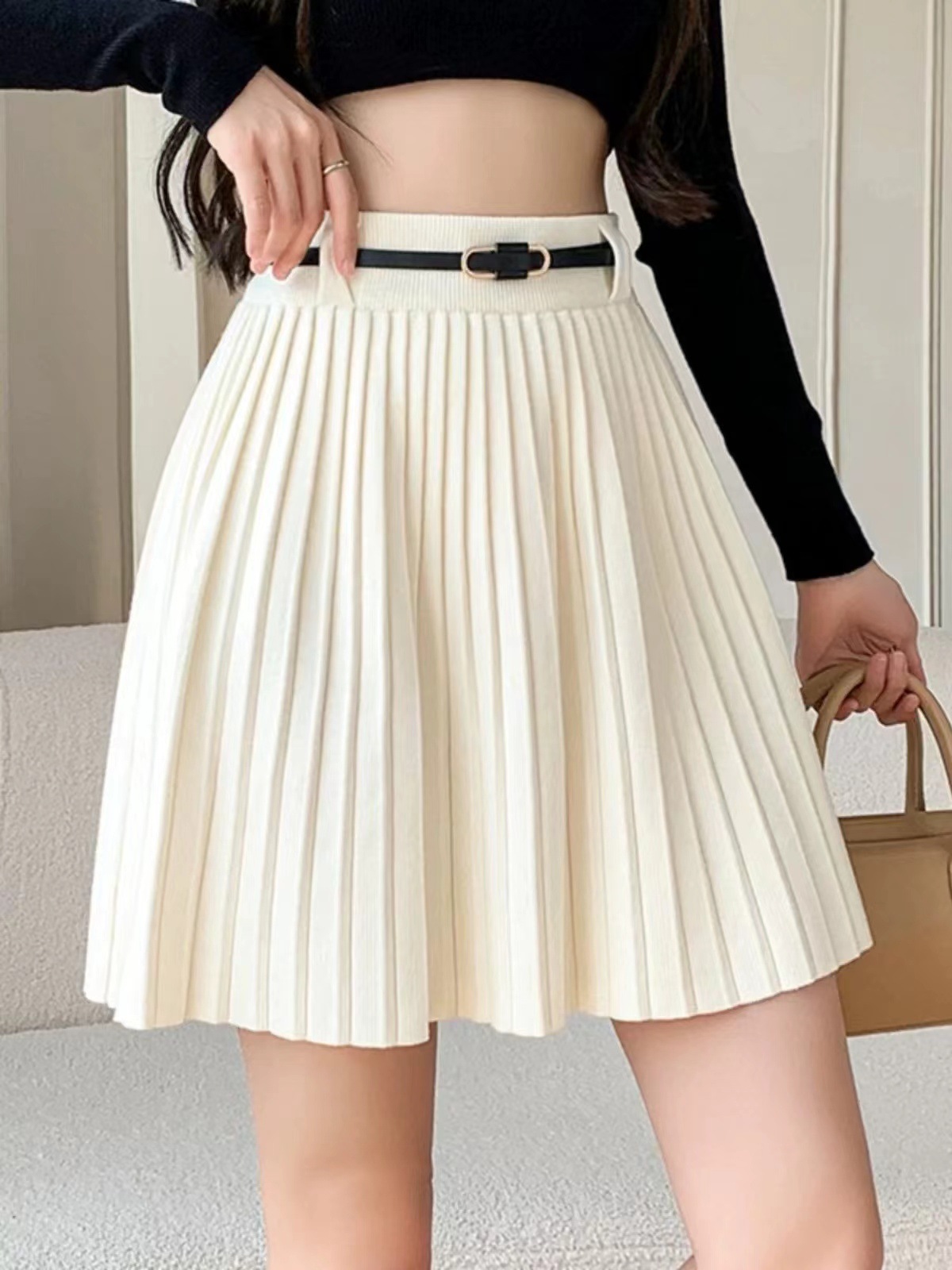 Abbigliamento donna Gonna plissettata vita alta linea a cintura stile gonna elastica sottile gonna corta lavorata a maglia