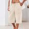 Abbigliamento maschile in cotone e lino, casual, multitasche, pantaloncini da spiaggia, tinta unita, larghi