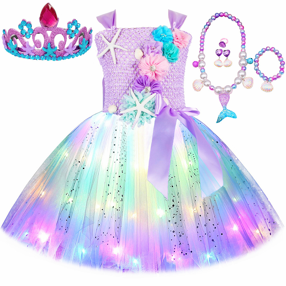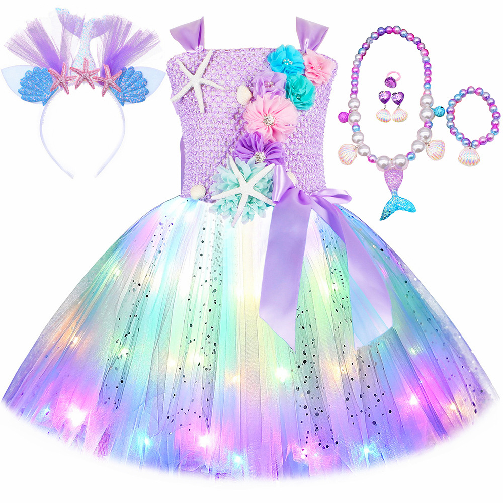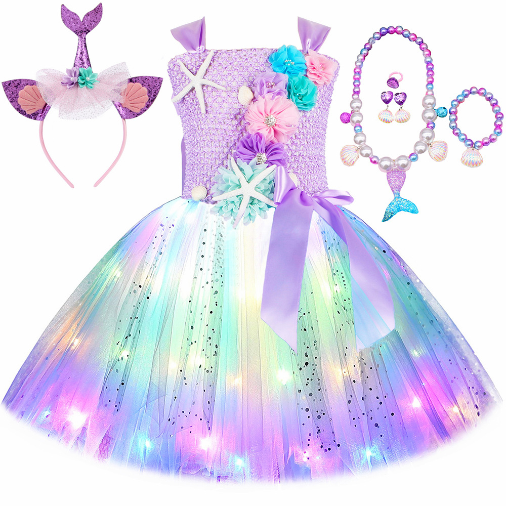 Abbigliamento per bambini Abito da principessa sirena Abito da bambina a LED Gonna tutù luminosa Gonna a sbuffo in rete per bambini Abbigliamento per bambini transfrontaliero
