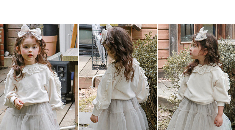 Abbigliamento per bambini Felpa con cappuccio a maniche lunghe pullover allentato in pizzo per bambina