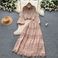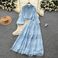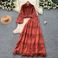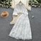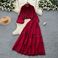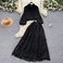 Abito autunnale con maniche a lanterna, gonna a vita alta e ampia, in pizzo pesante retrò francese