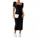 Abito da donna a maniche corte in maglia a coste con spacchi laterali, 2025, con vita e fianchi, colletto quadrato
