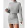 "Abito da donna a maniche lunghe con collo alto a coste - Abito midi attillato e attillato per autunno e inverno"