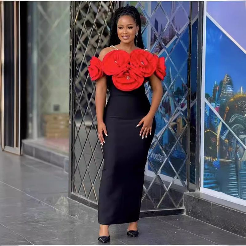 Abito da sera lungo aderente, aderente, senza spalline, a fiori, ampio, rosso, alla moda, senza maniche, aderente, casual, da donna