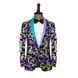 Abito da uomo con motivo a nuvole, paillettes, colori abbinati, abito da spettacolo sul palco, colletto verde con frutta