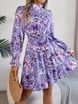 Abito elegante da donna con scollo a V, manica lunga, a trapezio, con volant, stile autunno-inverno