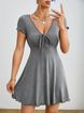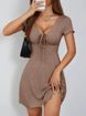 2024 Dress Drawstring Knot Decoration Summer Women's Solid Color Dress V-neck