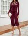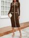 Abito invernale con colletto a punta – Abito da donna in maglia a maniche lunghe in misto lana di coniglio (S-XL, patchwork multicolore, silhouette a matita)