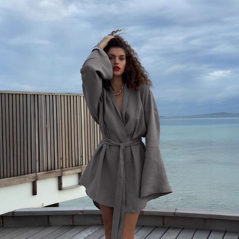 Cotton and Linen Long Robe Dress for Women 2025 Autumn and Winter New Style Tie Dress Casual Comfortable Beach Dress
