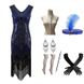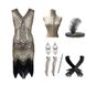 Abito retrò da donna, abito Gatsby, gonna con nappe, perline e paillettes