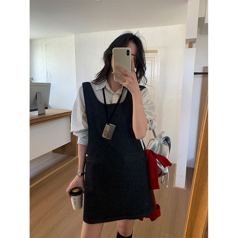 Huang Zheng sleeveless denim vest dress for women in spring 2025, Korean style short casual skirt H1FC510010