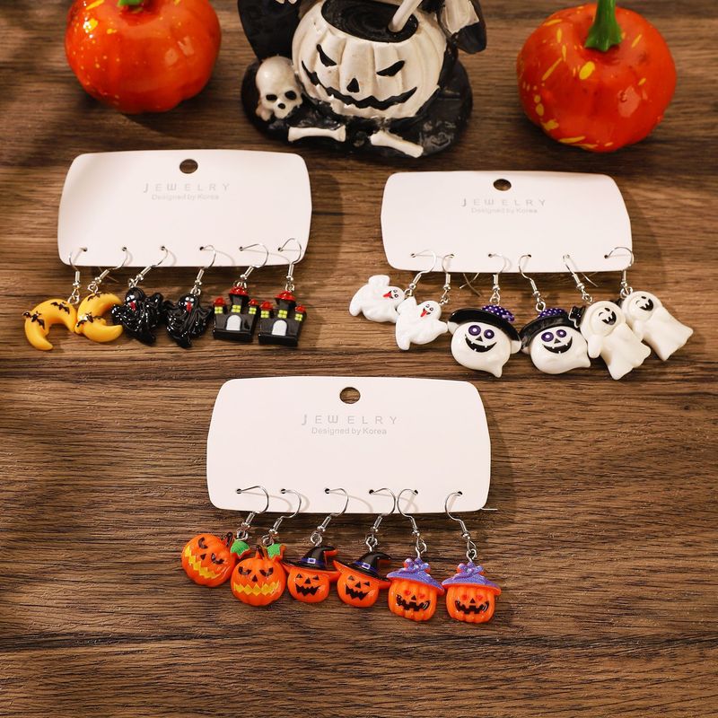 Accessori divertenti per feste Zucca Fantasma Pipistrello Castello oscuro Orecchini di Halloween Set