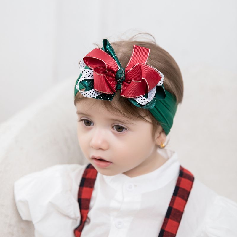 Accessori per capelli per bambini europei e americani, elastico in nylon per capelli per neonati, fettuccia in filo, fiocco, fascia per capelli natalizia per bambine