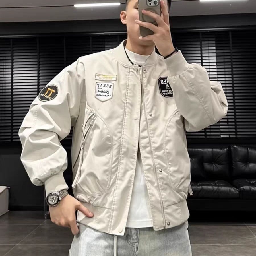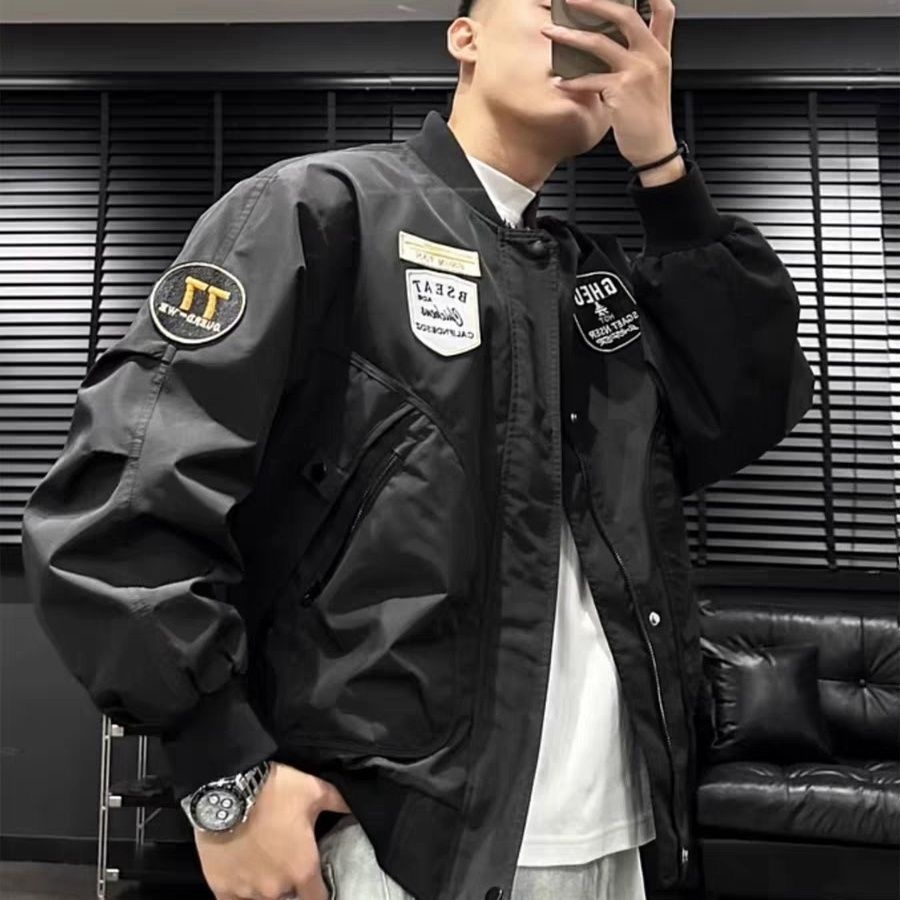 Giacca da baseball da uomo ActiveGo ActiveGo autunno stile americano, alla moda, casual, ricamata, nuova di zecca, da pilota, elegante