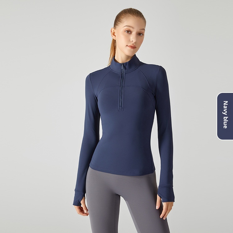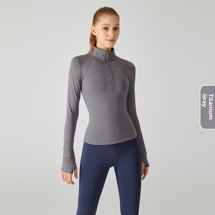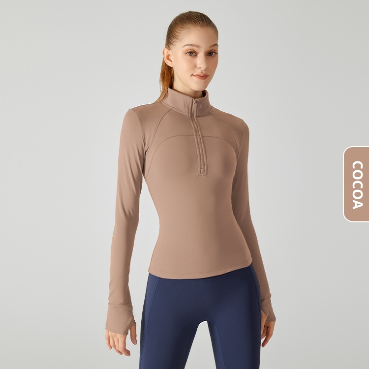 ActiveGo ActiveGo Nuovo top fitness spesso foderato in pile con mezza cerniera, giacca sportiva slim fit con collo alto per donna, caldo cappotto da yoga