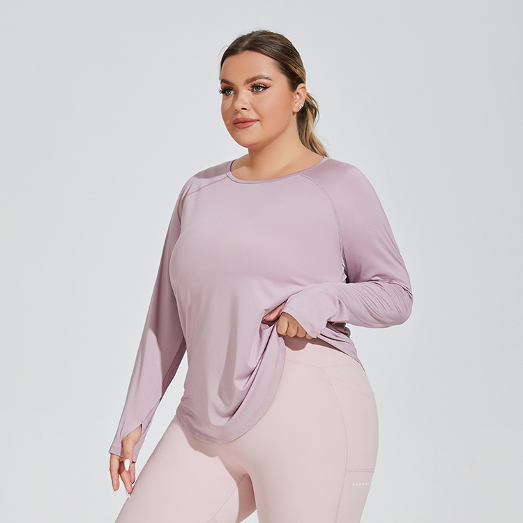 Product Source Category:In Stock,Product Category:T-shirt,Functionality:Breathable,Brand:other,Applicable Gender:Female,Pattern:Solid Color,Error margin:1~2cm,Suitable for the season:Autumn,Is it in stock?:yes,Inventory Type:Complete order,Fabric Name:Milk Silk,Fabric Composition:Polyester Fiber Dacron,Fabric Composition Content:96,Lining Material Name:Spandex,Lining Composition:Spandex,Lining Material Composition Content:4,Item Number:YY206 large size,Color:Haze Blue, Taro Purple, Serenity Black,Size:European and American 1XL, European and American 2XL, European and American 3XL, European and American 4XL,Applicable Scenarios:Running sports, fitness and bodybuilding,Sleeve Length:Long Sleeve,Wearing style:Pullover,Length of clothing:Over-the-Hip,Clothing Designs:Loose fit,Applicable to the target audience:Women