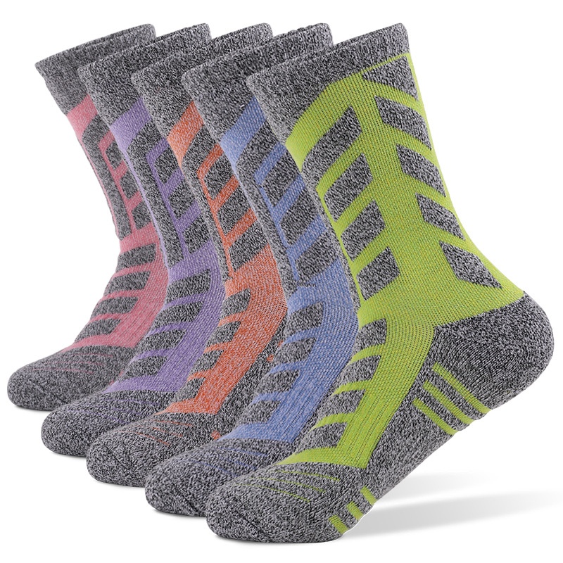 Fabric Name:Combed Cotton,Seamless Stitching:No: Machine-sewn edges,Functionality:Sweat-absorbent, anti-friction,19037944544,Pattern:Color Blocking,Packaging form:Bagged,Applicable Gender:Female,Suitable age group:Youth 18-40 years old, middle-aged 40-60 years old,Main fabric composition:Cotton,High-waisted:Mid-Calf,Number of stitches:144N,Time to market:Autumn 2022,Suitable for the season:Winter,Product Category:Professional Sports Socks,Origin:Foshan,Applicable Scenarios:running,Minimum Order Quantity:300,Is it exclusively for cross-border export supply?:yes,Item Number:Outdoor H03,Brand:There is a Wolf,Color:Green, purple, orange, sky blue, pink, 5 pairs mixed pack with one pair of each color,Size:M 35-38, L 39-42,Whether to import:No,Ingredients and Content:80,Main fabric ingredient content:80% included - 90% excluded,Style:Exercise,Weaving Techniques:Single Needle,Content of the main fabric components:80,Year/Season of Release:Winter of 4094,Processing Time:3