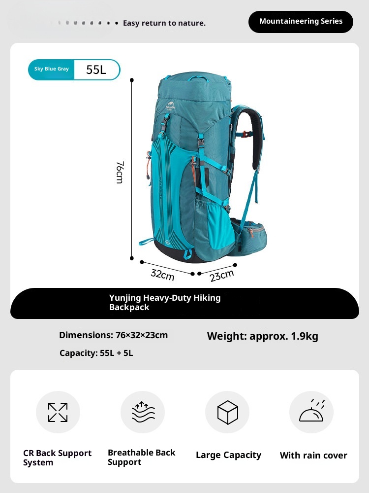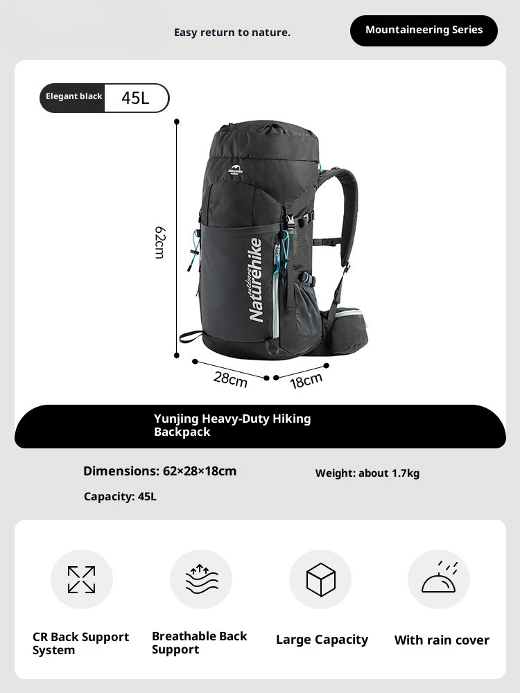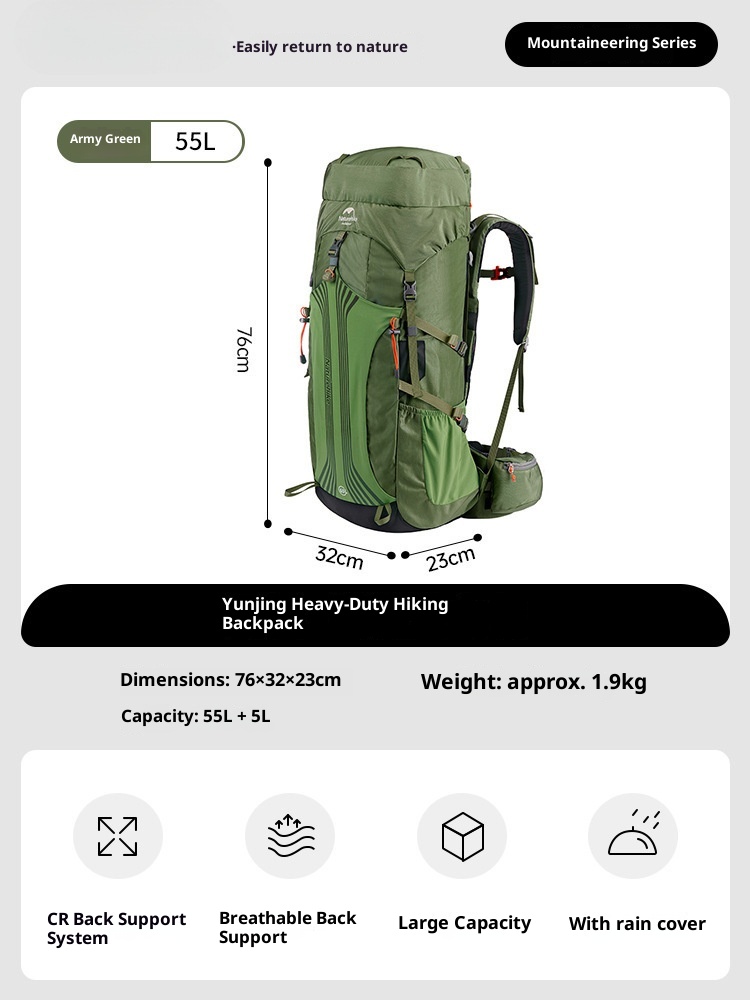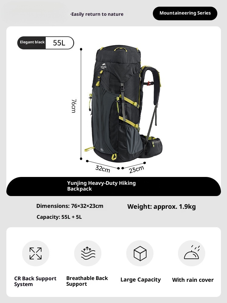 Brand:other,Material:Nylon,Item Number:NH16Y020-Q,Applicable Gender:Male,Functionality:Waterproof, wear-resistant, expandable, load-reducing, spine protection, dry-wet separation, night safety reflective,Color:Ya Black-45L, Tianqing Gray-45L, Ya Bo Same Style Ya Black-55L, Tianqing Gray-55L, Army Green-55L,Capacity:55L,Year and season of release:Spring 2025,Applicable Scenarios:Outdoor Sports,Style:Casual Travel,Pattern:Striped,Product Category:Hiking Backpack