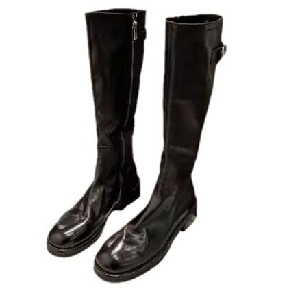 Grape Mom Studiolee After the Rain London ~ Washed Full Grain Leather Thick Heel Thick Sole High Tube Riding Boots for Women